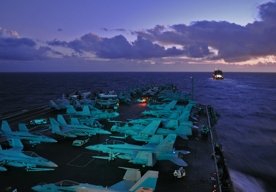 PACIFIC OCEAN (Dec 28, 2011) The Nimitz-class aircraft carrier USS Abraham Lincoln (CVN 72) prepares to pull alongside the Military Sealift Command dry cargo and ammunition ship USNS Charles R. Drew (T-AKE 10) for a replenishment at sea. Lincoln is in the U.S. 7th Fleet area of operations (AOO) as part of a deployment to the western Pacific and Indian Oceans en route to support coalition efforts in the U.S. 5th Fleet AOO. (U.S. Navy photo by Mass Communication Specialist Seaman Gregory Harden)