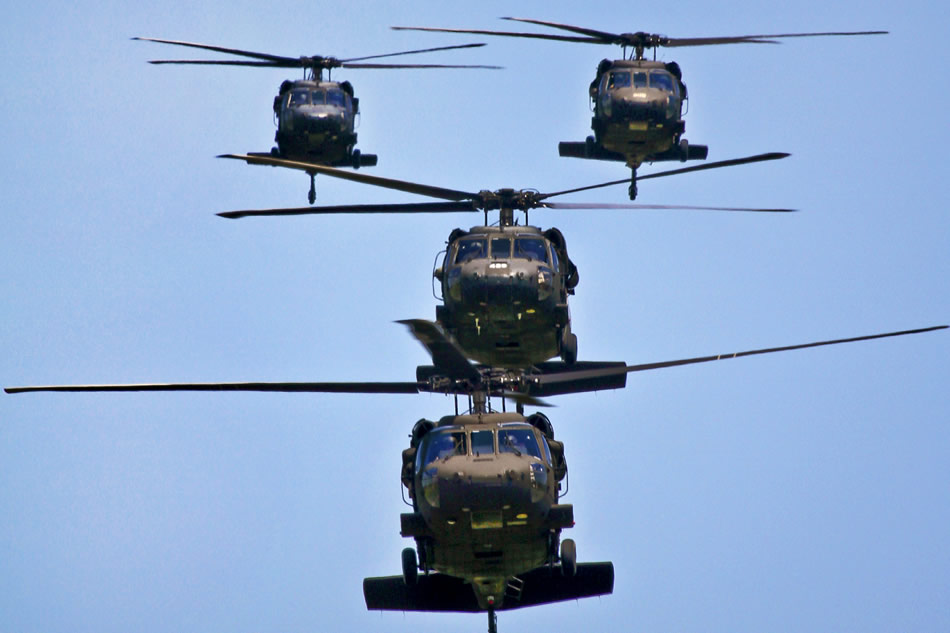 Four UH-60 Black Hawk helicopters land at Atlantic City International Airport, N.J., May 29, 2012. The crews are assigned to 1-150th Assault Helicopter Battalion, New Jersey Army National Guard. The helicopters transported civilian employers of New Jersey's Guardsmen for "Boss Lift," an event run by the Employer Support of the Guard and Reserve. The civilian employers spent the day touring facilities and meeting soldiers and airmen. U.S. Air Force photo by Tech. Sgt. Matt Hecht