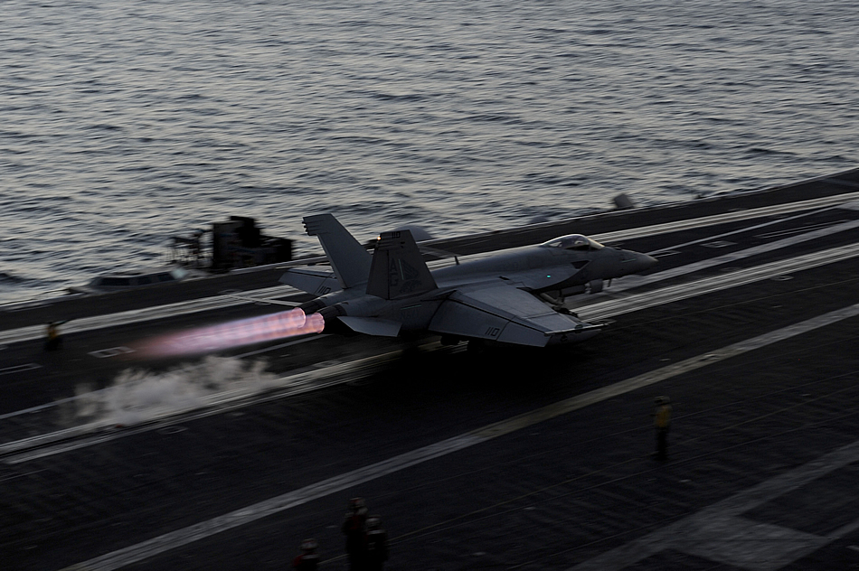 U.S. 5th FLEET AREA OF RESPONSIBILITY (OCT. 31, 2012) An F/A-18E Super Hornet assigned to the Pukin Dogs of Strike Fighter Squadron (VFA) 143 launches from the Nimitz-class aircraft carrier USS Dwight D. Eisenhower (CVN 69). Dwight D. Eisenhower is deployed to the U.S. 5th Fleet area of responsibility conducting maritime security operations, theater security cooperation efforts and support missions for Operation Enduring Freedom. (U.S. Navy Photo by Mass Communication Specialist 3rd Class Justin R. Wesley)
