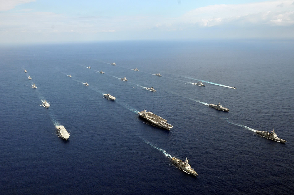 EAST CHINA SEA (Nov. 16, 2012)Twenty-six ships from the U.S. Navy and the Japan Maritime Self-Defense Force, including ships from the George Washington Carrier Strike Group, transit together at the conclusion of exercise Keen Sword 2013. Keen Sword 2013 is a biannual exercise held to enable the United States and Japan to train in coordination procedures and heighten interoperability needed to effectively defend or respond to a crisis in Japan and the Asia-Pacific region. The U.S. Navy is constantly deployed to preserve peace, protect commerce, and deter aggression through forward presence. Join the conversation on social media using #warfighting. U.S. Navy photo by Chief Mass Communication Specialist Jennifer A. Villalovos