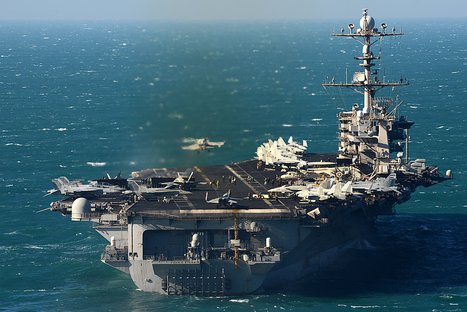 U.S. 5TH FLEET AREA OF RESPONSIBILITY (Jan. 15, 2013) The aircraft carrier USS John C. Stennis (CVN 74) conducts flight operations during a deployment to the U.S. 5th Fleet area of responsibility. John C. Stennis is conducting maritime security operations, theater security cooperation efforts and support missions for Operation Enduring Freedom. (U.S. Navy photo by Mass Communication Specialist 2nd Class Kenneth Abbate)