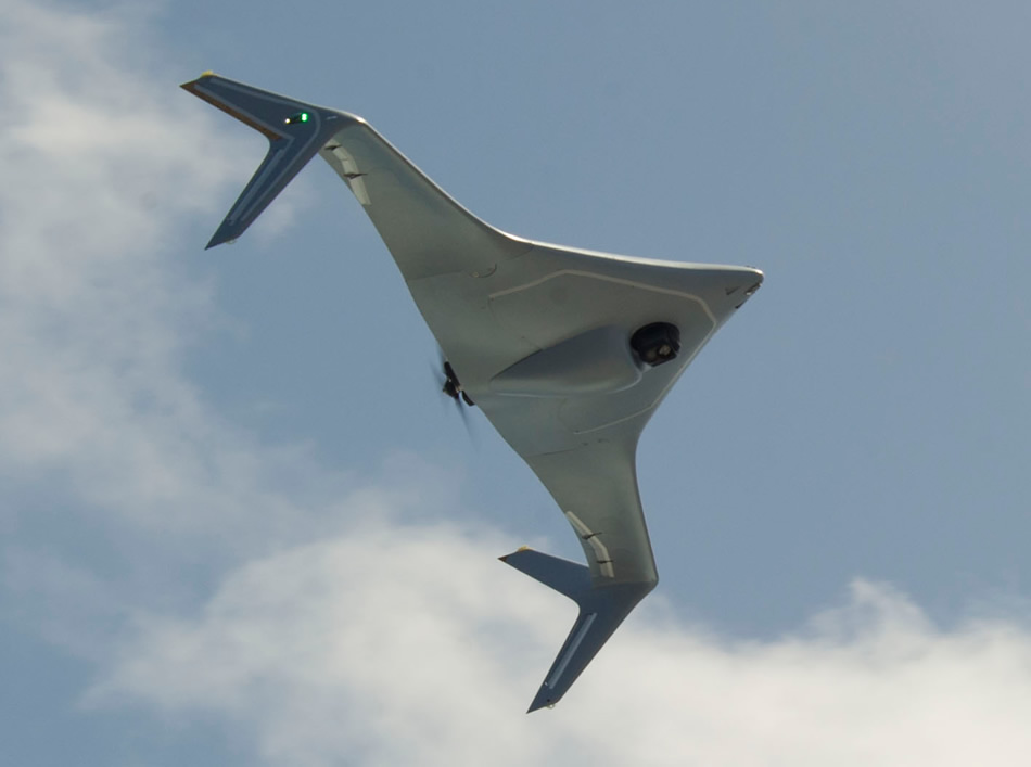 STRAITS OF FLORIDA (June 06, 2014) During an experimentation conducted by U.S. Fourth Fleet and Navy Warfare Development Command (NWDC), the BAT Unmanned Aircraft System flies over the Joint High Speed Vessel USNS Spearhead (JHSV 1) during its maiden flight off of a U.S. Navy vessel. (U.S. Navy photo by Lt. Jessica Crownover)