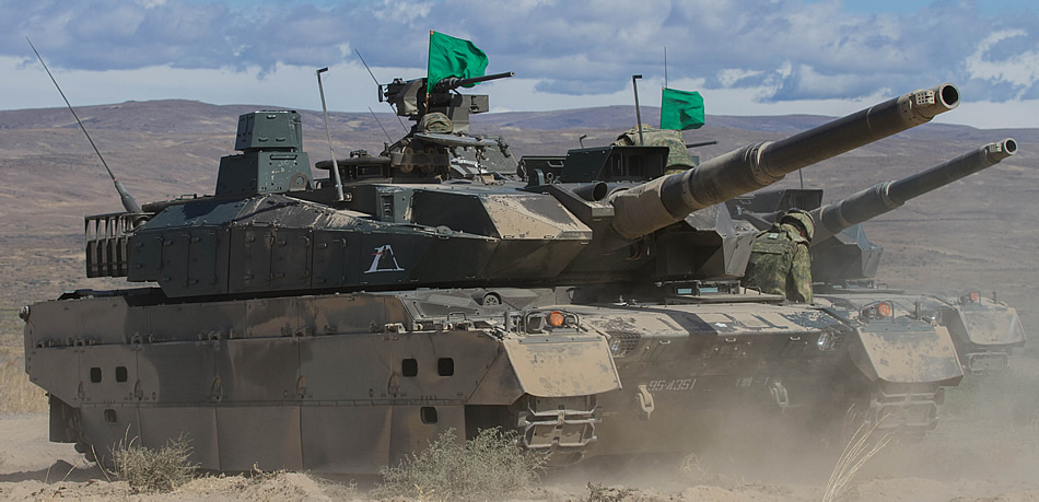 Japan Ground Self Defense Force members prepare a Type 10 battle tank for a maneuver training exercise at Yakima Training Center, Wash., Sept. 3. The exercise was part of Operation Rising Thunder, a combined operation between the Army and Japan designed to increase interoperability between the two nations. (U.S. Army photo by Sgt. Cody Quinn, 28th Public Affairs Detachment)
