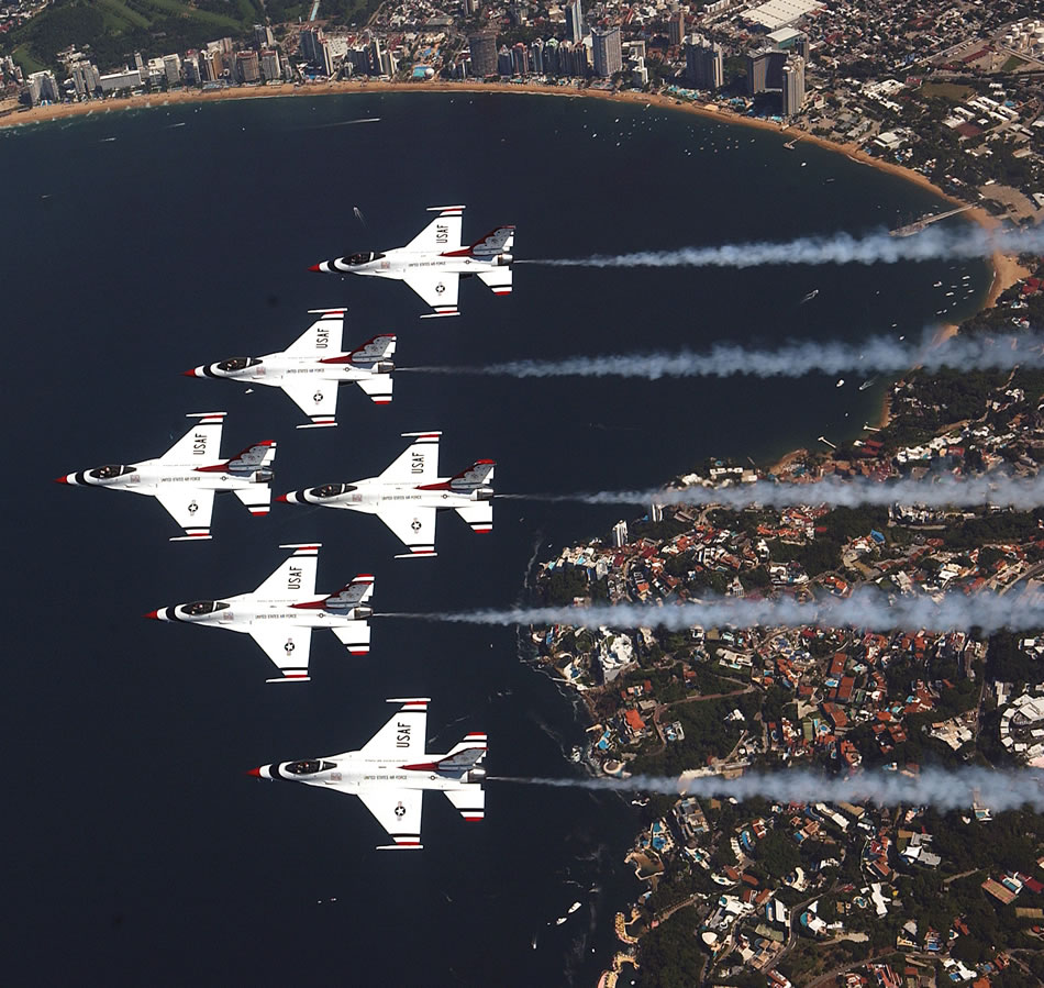 The U.S. Air Force Air Demonstration Squadron, "The Thunderbirds," perform the six ship Delta formation here Oct 31. (U.S. Air Force photo by Tech. Sgt. Justin D. Pyle)