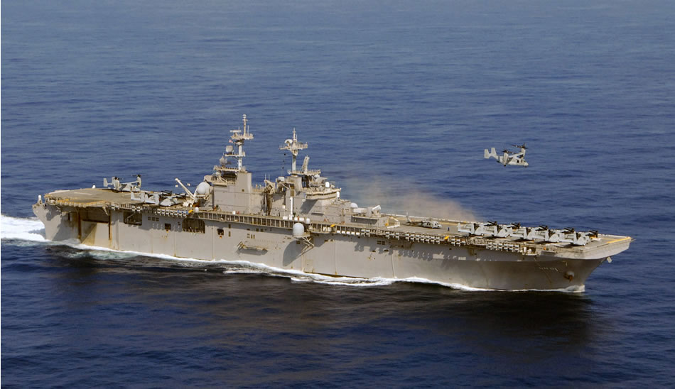 MEDITERRANEAN SEA (Sept. 29, 2007) - An MV-22 "Osprey" attached to Marine Medium Tilt-rotor Squadron (VMM) 263 takes to the air from the flight deck of the multipurpose amphibious assault ship USS Waspx (LHD 1). Waspx is on a surge deployment bringing the Osprey on its first combat deployment to the Middle East. U.S. Navy photo by Mass Communication Specialist 2nd Class Zachary L. Borden>More Photos
