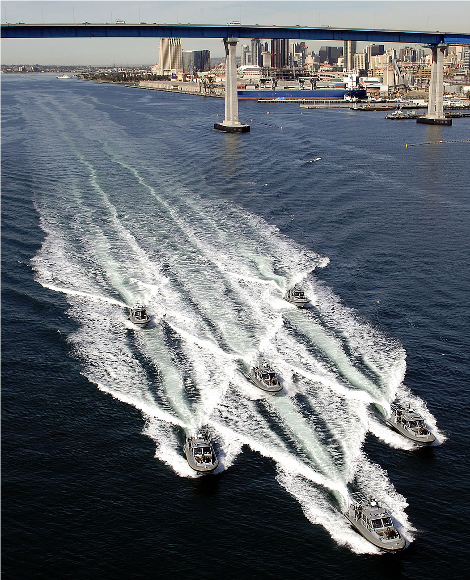 02/05/07 - U.S. Navy patrol boats from Inshore Boat Units Five One and Five Two conduct operations near the Coronado Bay Bridge in San Diego, Calif., Feb. 5, 2007. The two units are part of Naval Coastal Warfare Squadron Five. DoD photo by Mass Communication Specialist 1st Class Michael B.W. Watkins, U.S. Navy. (Released)