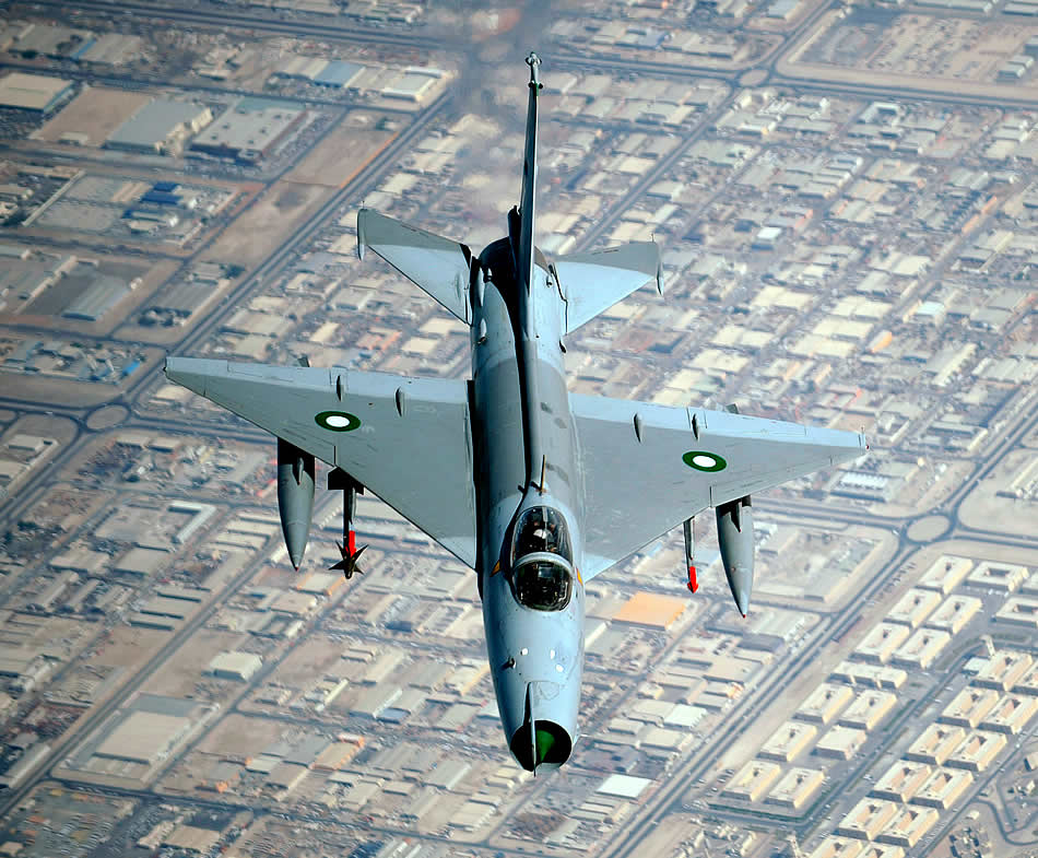 A Pakistani F-7 conducts a training mission during a multinational exercise, Dec. 9, 2009. Aircrews from France, Jordan, Pakistan, the U.A.E., the U.K. and the U.S. trained together in the Air Forces Central area of responsibility in fighting a large-scale air war. (U.S. Air Force photo by Staff Sgt. Michael B. Keller)