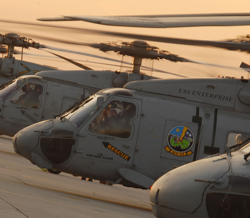 JACKSONVILLE, Fla. (Jan 13, 2010) SH-60 Sea Hawk helicopters assigned to Anti-Submarine Squadron (HS) 7 depart Naval Air Station Jacksonville to embark aboard the aircraft carrier USS Carl Vinson (CVN 70) en route to Haiti. The squadron and several Navy vessels are underway to render humanitarian assistance after a 7.0 magnitude earthquake struck the Caribbean nation. (U.S. Navy photo by Mass Communication Specialist Gary B. Granger Jr.)