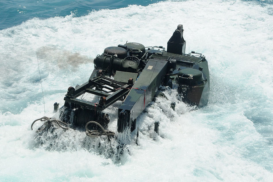 An amphibious assault vehicle exits the well deck of the multi-purpose amphibious assault ship USS Iwo Jima while the ship is off the coast of Haiti participating in Continuing Promise 2010 humanitarian civic assistance mission. The assigned medical and engineering staff embarked aboard Iwo Jima will work with partner nation teams to provide medical, dental, veterinary and engineering assistance to eight different nations. (U.S. Navy photo by Petty Officer 2nd Class Zane Ecklund)