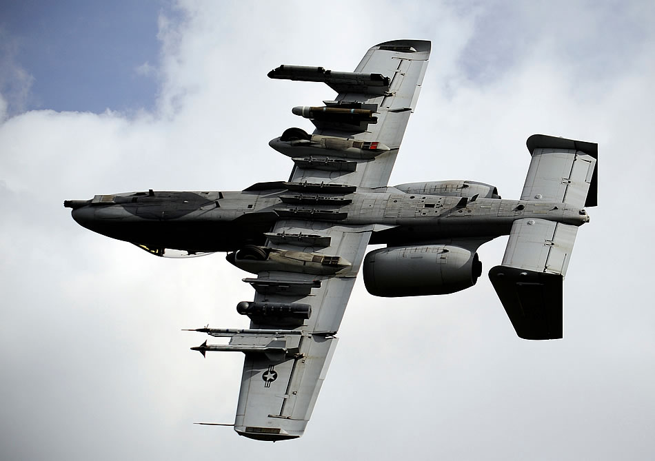 An A-10 Thunderbolt II does a show of force maneuver after locating a simulated downed pilot during RED FLAG-Alaska 13-3, Aug. 22, 2013, at Eielson Air Force Base, Alaska. Two A-10s defended the pilotÕs position until members of the 210th Rescue Squadron could rescue him. The A-10 is assigned to the 163rd Fighter Squadron, Indiana Air National Guard, Ft. Wayne, Ind. (U.S. Air Force photo/Senior Airman Shawn Nickel)