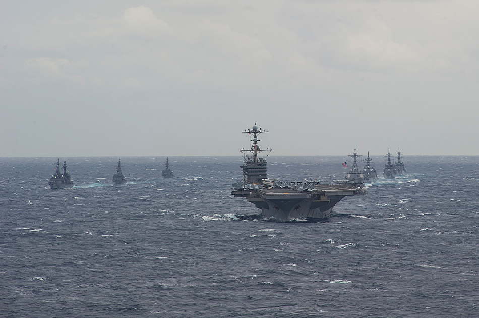 PHILIPPINE SEA (Nov. 28, 2013) The aircraft carrier USS George Washington (CVN 73), right, the George Washington Strike Group and Japan Maritime Self-Defense Force ships participate in tactical maneuver training during Annual Exercise (AnnualEx) 13. AnnualEx 13 is designed to increase the defensive readiness and interoperability of Japanese and U.S. Naval forces through training in air and sea operations. (U.S. Navy photo by Mass Communication Specialist 3rd Class Ricardo R. Guzman)