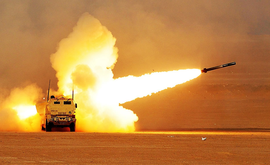 Soldiers of Alpha Company, 1st Battalion, 94th Field Artillery Regiment, fire a rocket from a M142 high mobility rocket system during a decisive action training environment exercise on Oct. 4, 2016 near Camp Buehring, Kuwait. The unit certified four HIMARS operator crews as well as a contingent of forward observers during the exercise (U.S. Army photo by Sgt. Aaron Ellerman)