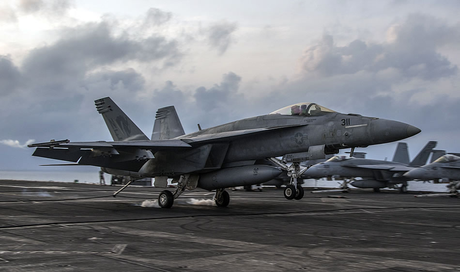 PACIFIC OCEAN (May 16, 2017) An F/A-18 Hornet assigned to the "Golden Dragons" of Strike Fighter Squadron (VFA) 192 makes an arrested landing aboard the Nimitz-class aircraft carrier USS Carl Vinson (CVN 70) in the western Pacific. The U.S. Navy has patrolled the Indo-Asia-Pacific routinely for more than 70 years promoting regional peace and security. (U.S. Navy photo by Mass Communication Specialist 3rd Class Matthew Granito)