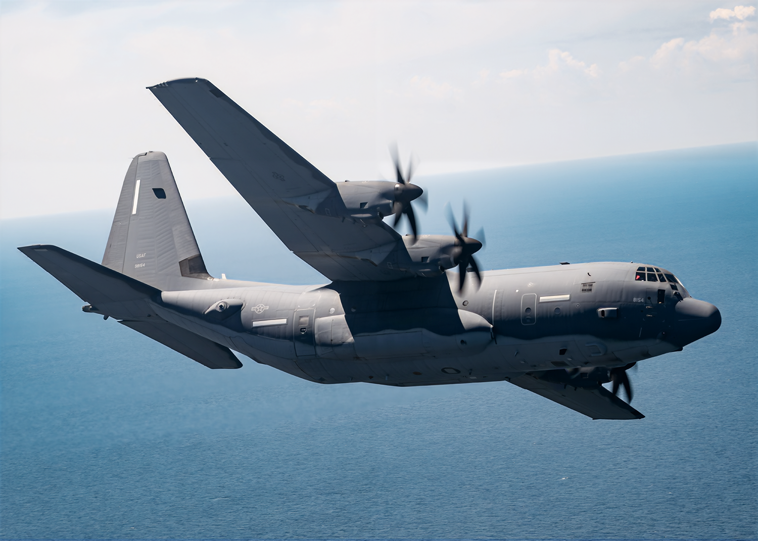 A U.S. Air Force EC-130J Commando Solo flies over the Gulf of America, September 16, 2025. The aircraft, assigned to the 417th Flight Test Squadron at Eglin Air Force Base, Florida, performs flight test operations on next-generation hardware and software to improve lethality and readiness across the C-130 fleet. (U.S. Air Force photo by Staff Sgt. Thomas Barley)